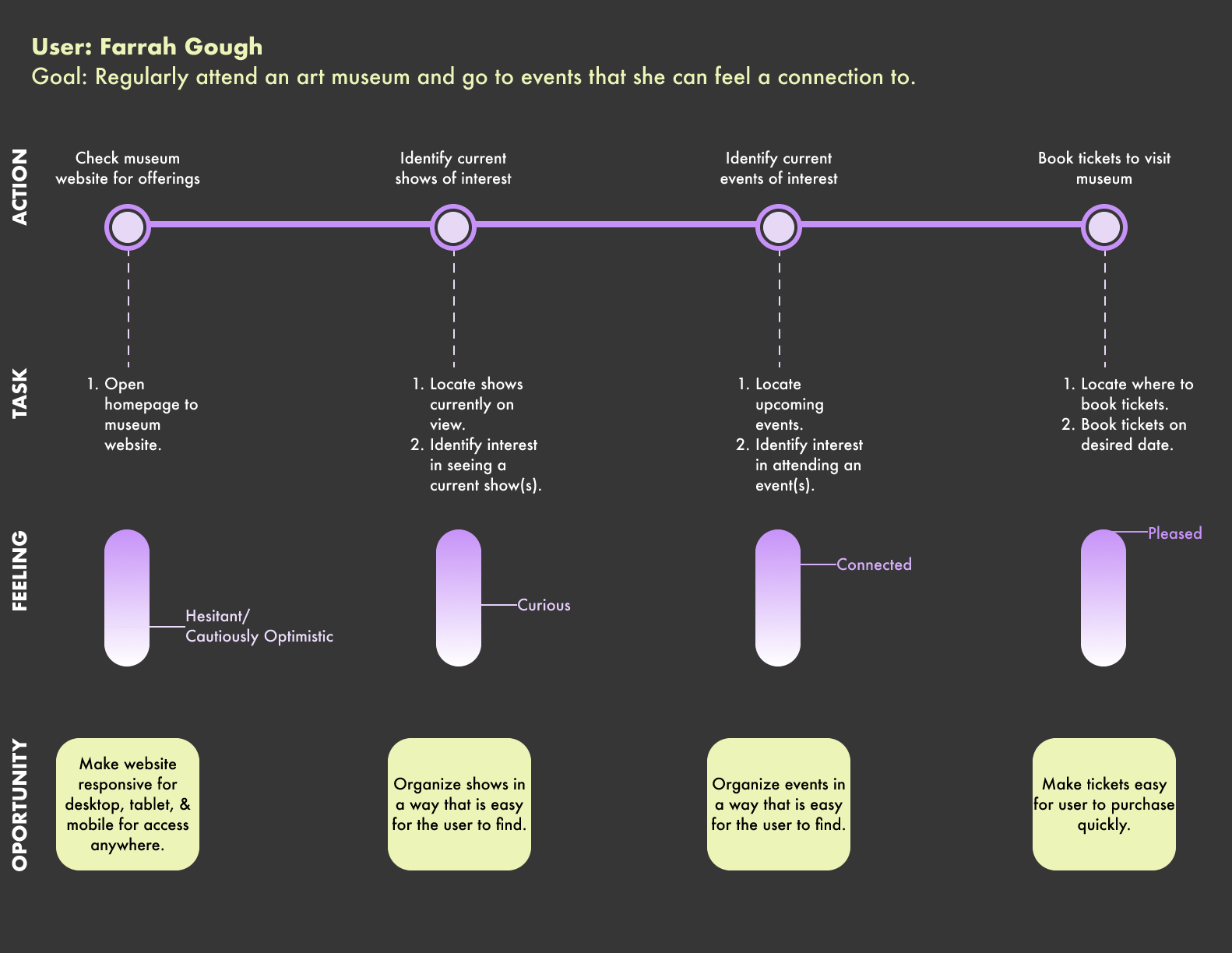 We interviewed users of varying backgrounds with different levels of interest in contemporary art. Each individual expressed an interest in being able to see art without having to spend too much money. The notion of being able to regularly visit the museum made users feel like it was more of a communal space rather than an exclusive one.